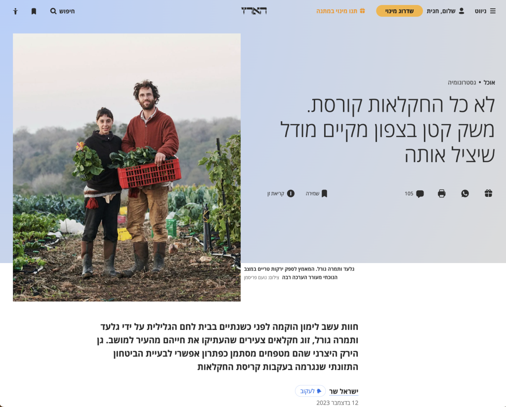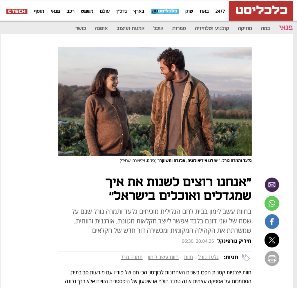 בשנים האחרונות אנחנו, גלעד ותמרה גורל, חיים ונושמים גידול ירקות יצרני בקנה מידה קטן. מצאנו בעבודה עם האדמה לא רק מקצוע — אלא דרך חיים שמחברת אותנו למהות של עשייה, קהילה, קיימות וחיבור לקרקע.