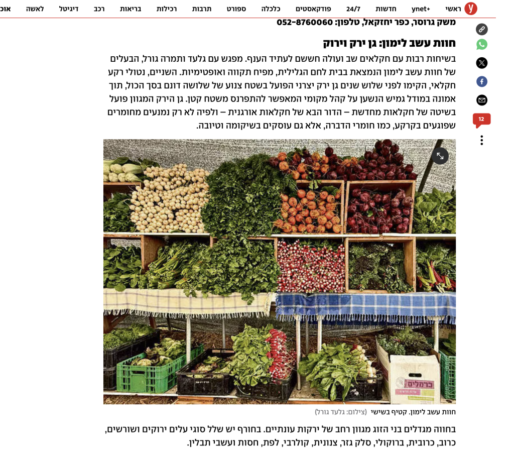 גן ירק יצרני | ירקות משובחים בגידול אקולוגי | יום שוק שבועי בשדה - כל שישי 9:00-13:00